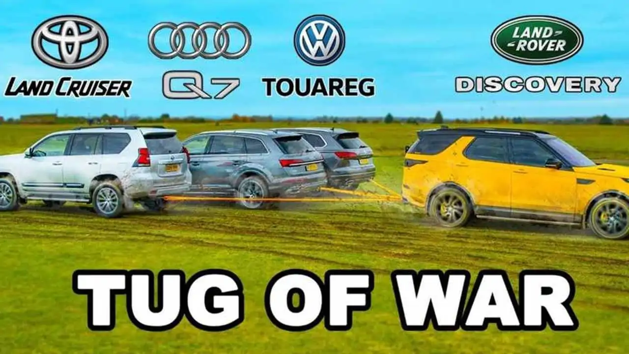 İngiliz YouTube kanalı CarWow'un bu yeni halat çekme yarışına katılan araçlar sırasıyla Audi Q7, Volkswagen Touareg, Toyota Land Cruiser ve Land Rover Discovery şeklinde olmuş. Bu araçlardan Audi Q7 ile VW Touareg'in aynı 3.0 litrelik TDI V6 motoru kullandıklarını ve 286 beygir güç ürettiklerini görüyoruz. Bu araçların tork değeri de 600 Nm şeklinde. Fakat Q7, Touareg'ten 95 kg kadar daha ağır bir gövdeye sahip.