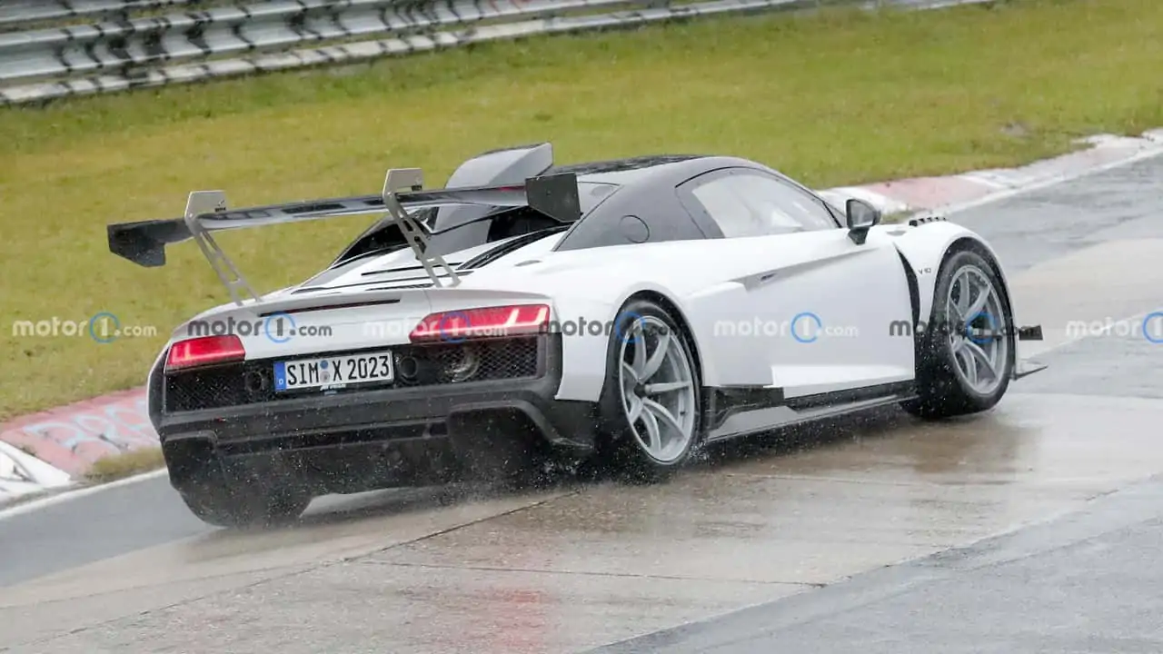 Audi'nin kanatlı ve hava girişlerine sahip otomobili, bir GT3 yarış aracını andırıyor, ancak bunun farklı bir yanı var: ön ve arka plakaları var. Yani tamamen yola çıkma iznine sahip