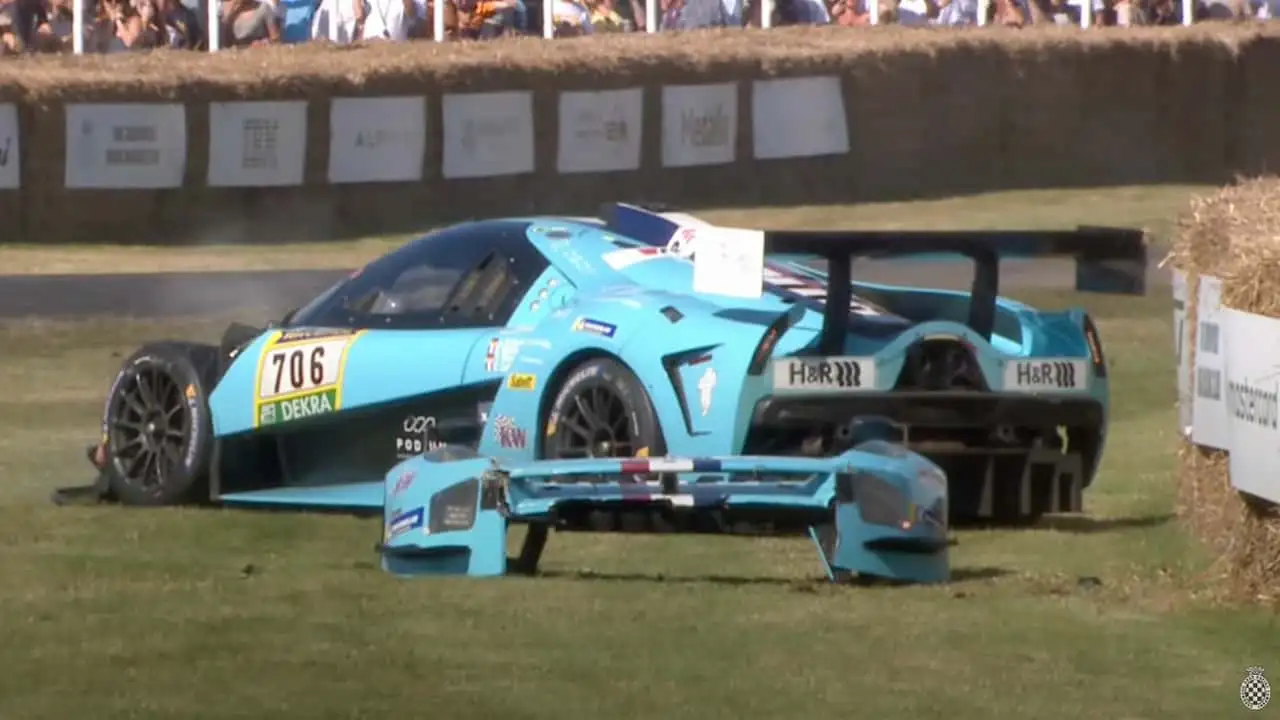 Goodwood Hız Festivalinin ne kadar merhametsiz olduğunu biliyoruz. 1.86 km uzunluğundaki tırmanma etkinliğinde hafta sonunun dördüncü büyük kazası yaşandı ve bu kazanın kahramanı bir Glickenhaus SCG 004C yarış aracı.