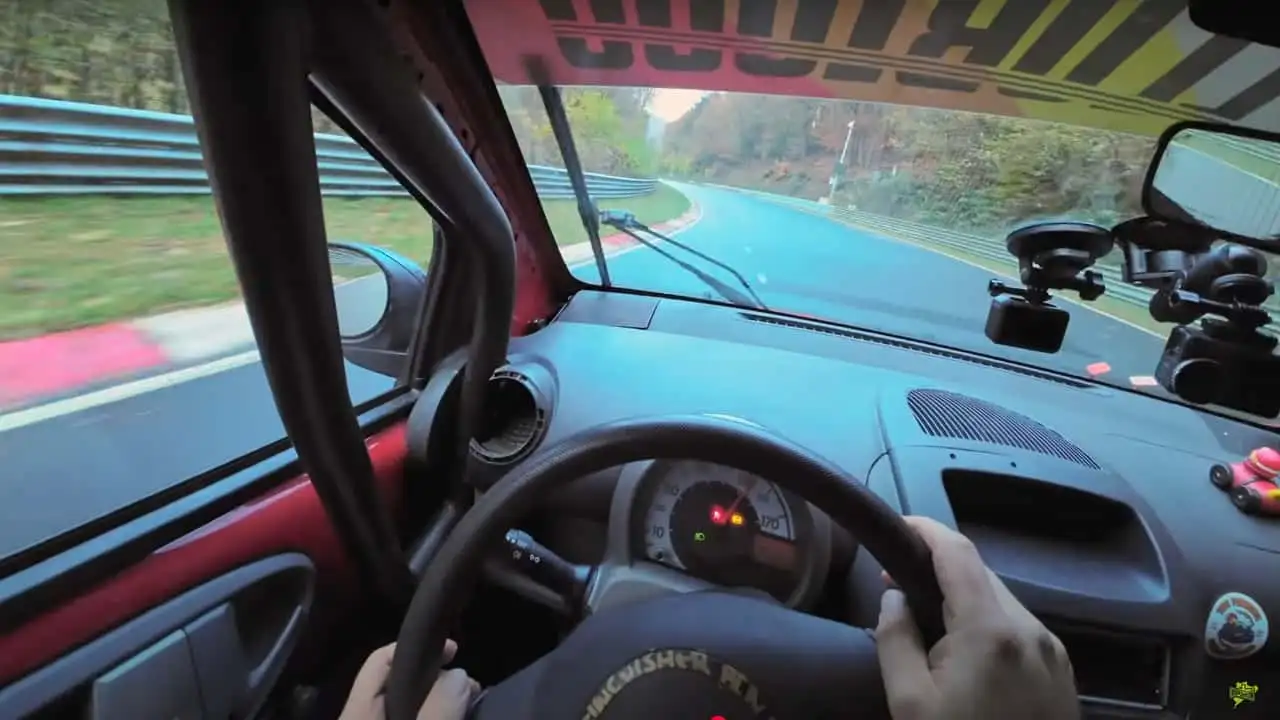 Bridge to Gantry kanalından Dale Lomas, eski bir Citroën C1 ile ıslak bir Nordschleife pist gününde ne kadar keyif aldığını izleyicileriyle paylaşıyor. Küçük Fransız hatchback sadece 69 beygir gücüne sahip, ancak 24 Saat Spa yarışlarına katılabilmesi için bütün gereksiz ağırlığından kurtulmuş ve takla kafesi ile güçlendirilmiş. Yani, kağıt üstünde mükemmel bir araba.