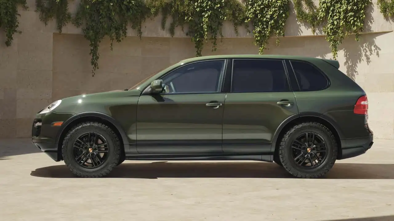 E1 nesli Cayenne, mat siyah vurgularla kontrast oluşturan örnek bir renk olan Blackolive ile yeniden boyandı. Porsche'ye göre, Amerikalı sahibi Phillip Sarofim, lüks SUV'sine 1970'lerin havasını vermek istemiş ve hatta bir çekme çubuğu takılmasını istemiş. Ayrıca, orijinal Cayenne'in düşük aralıklı transfer kutusu ve kilitli arka diferansiyel sayesinde son derece yetenekli olduğu arazi şartlarına uygun lastiklere yer verilmiş.