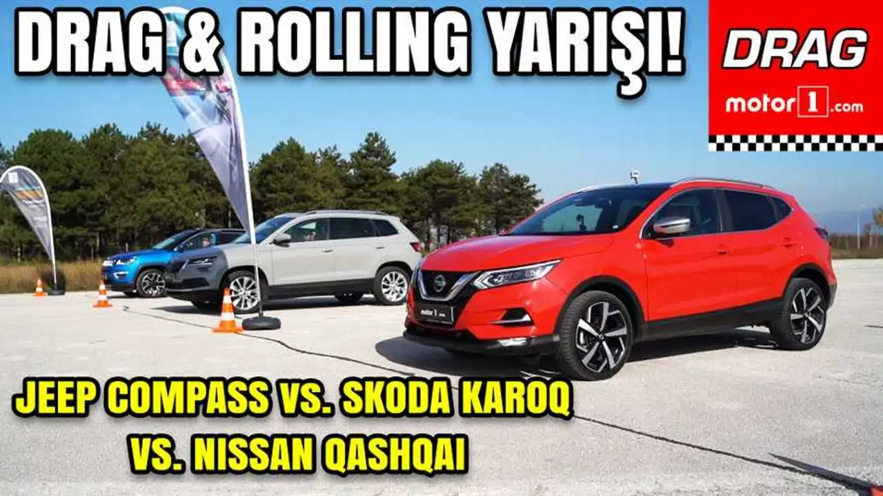Motor1 Türkiye Drag Serisi'nin bu seferki bölümünde gride üç tane C segmenti SUV dizdik. 150 ile 170 bg arasında değişen güç, 250-270 Nm arasında değişen tork değerlerinin çarpıştığı yarışta Jeep Compass, Nissan Qashqai ve Skoda Karoq kozlarını paylaştı.
